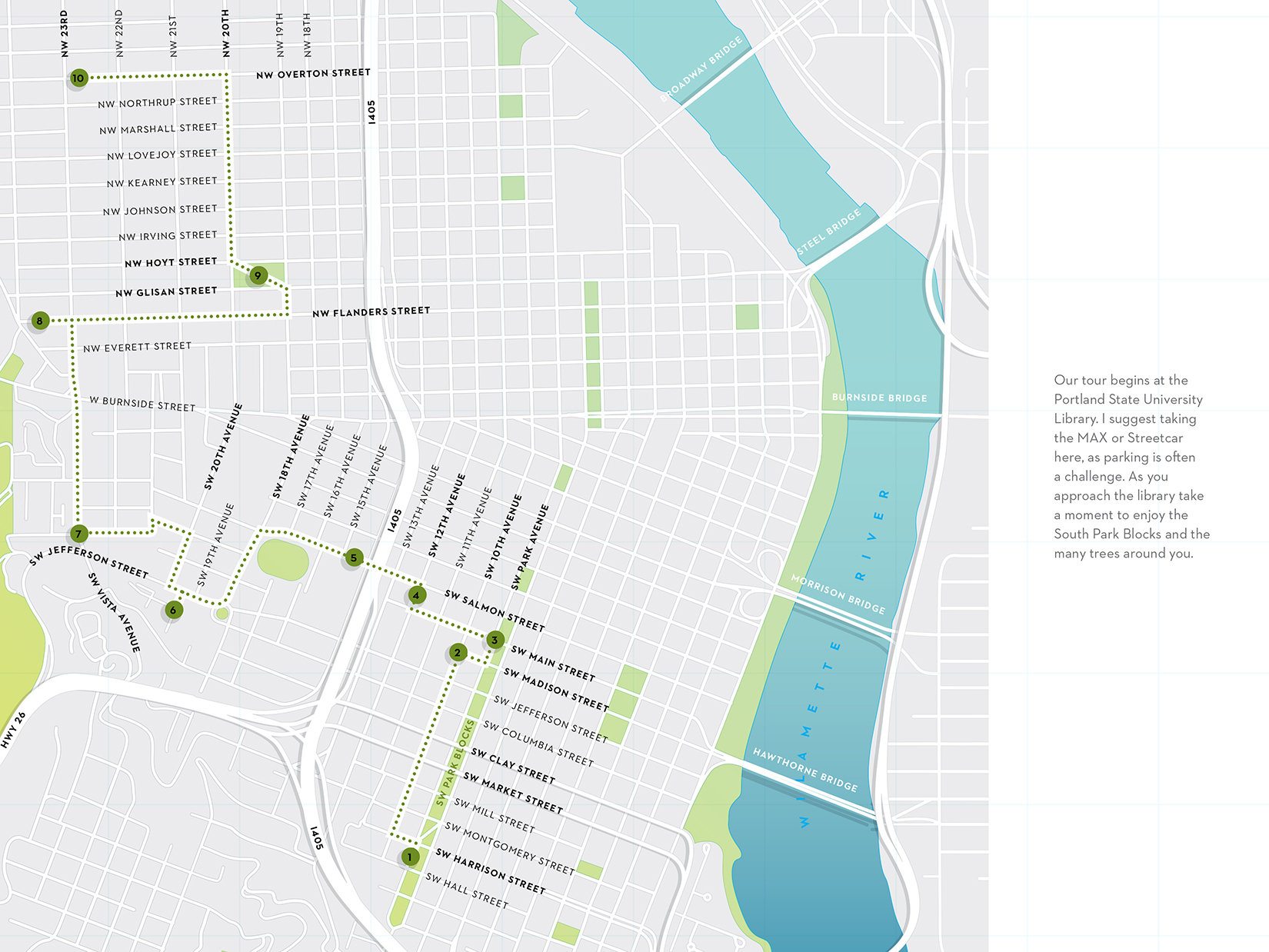 I authored, developed, and produced a publication entitled From Stumptown to Treetown: A Field Guide for Interpreting Portland's History Through its Heritage Trees. The guide is a ten stop walking tour of Portland Heritage Trees in the downtown core. The book features archival collections from several regional institutions and I secured partnerships to print the book and distribute it through Portland Parks & Recreation free of charge. In addition to presenting the work at numerous professional conferences and academic journals, this project received the Portland State University’s College of Liberal Arts and Science Dean's Award for Community Engagement. You can download a free copy of the booklet here.